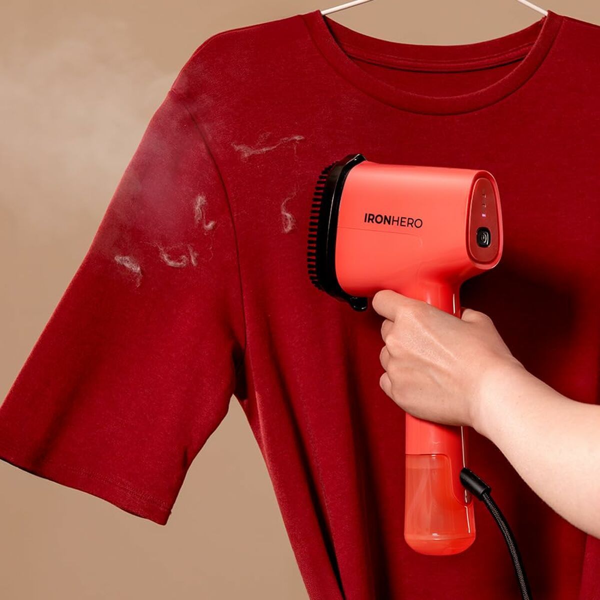 Det keramiske materiale sikrer en jævn varmefordeling og skånsom behandling af forskellige stoftyper, mens det ergonomiske design gør det behageligt at bruge.