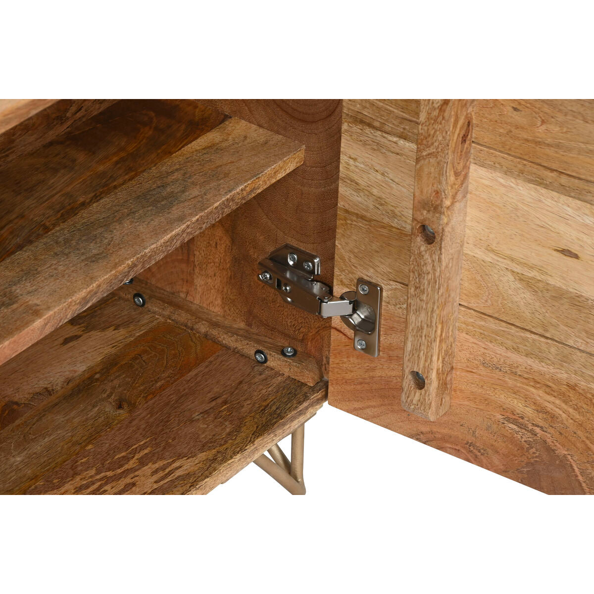 Tilføj et strejf af elegance og varme til din indretning med Natbord Home ESPRIT. Dette smukke natbord kombinerer gyldent metal med naturligt mangotræ i et raffineret design, der udstråler både charme og kvalitet.