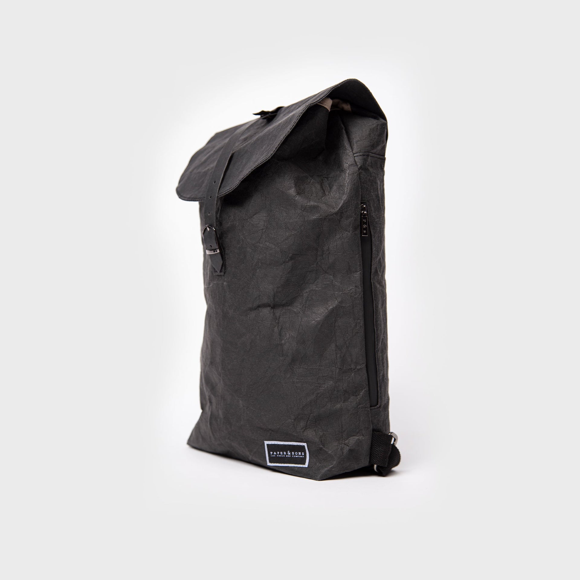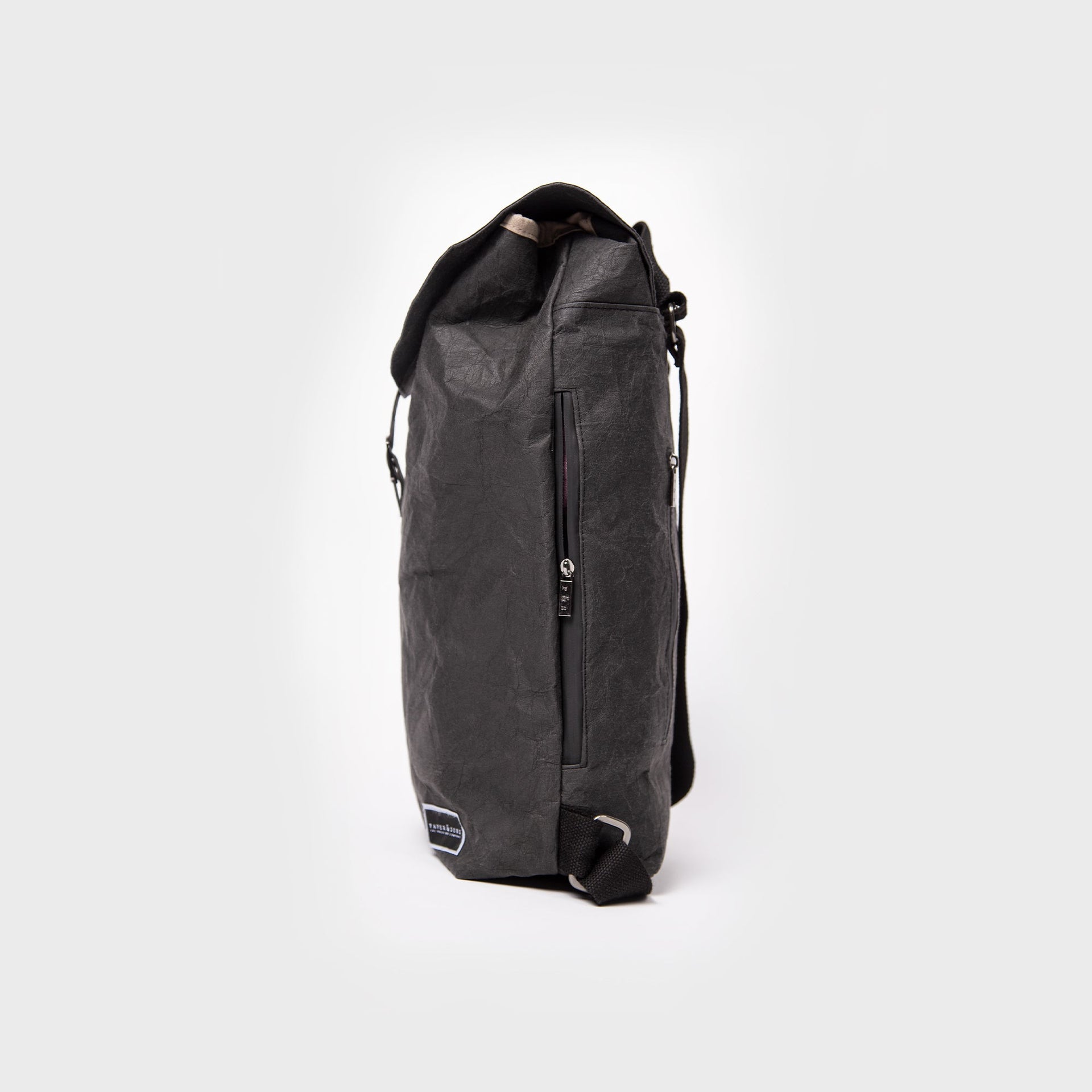 Materiale: Rygsækken er fremstillet af slidstærkt og vandafvisende kraftpapir, baseret på fornybare materialer som træfibre og hør. Der er hverken brugt plastik eller læder, hvilket gør den til et miljøvenligt alternativ uden at gå på kompromis med holdbarhed og udseende.